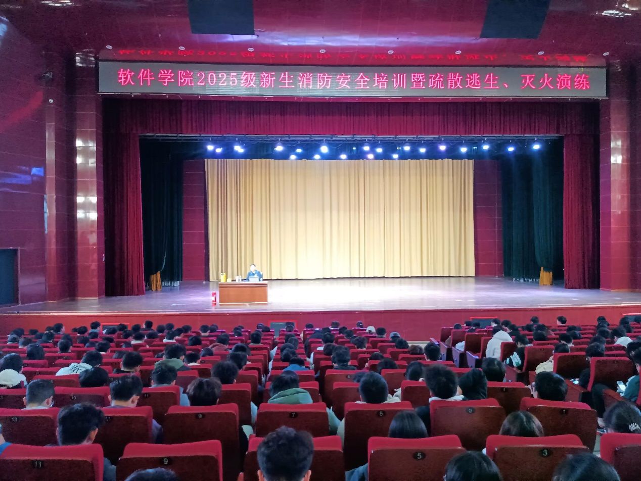为进一步贯彻落实学校关于消防安全教育与实验室安全工作的部署要求,切实增强师生消防安全意识,提升应急避险与自救互救能力,2025年10月25日下午,软件学院于开元校区会议中心组织开展了2025级新生消防安全培训暨疏散逃生与灭火演练。2025级全体1806名新生分两批次参加了本次培训与演练。