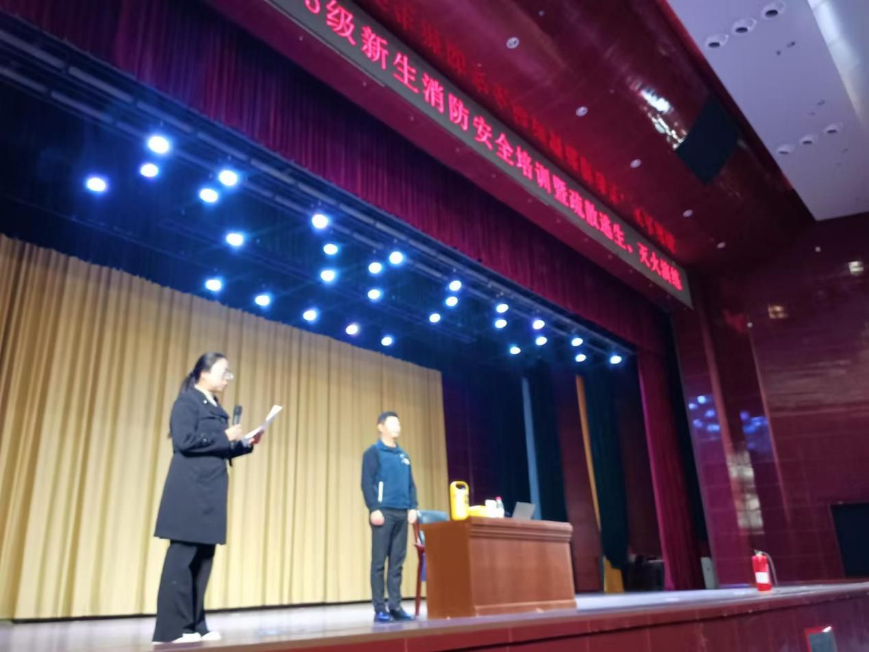 培训会议由学院安全领导小组副组长、党委副书记张静主持并作动员讲话。张静强调了消防安全教育的重要性,希望全体新生牢固树立安全意识,熟练掌握应急技能,并对演练流程与注意事项作了具体安排。