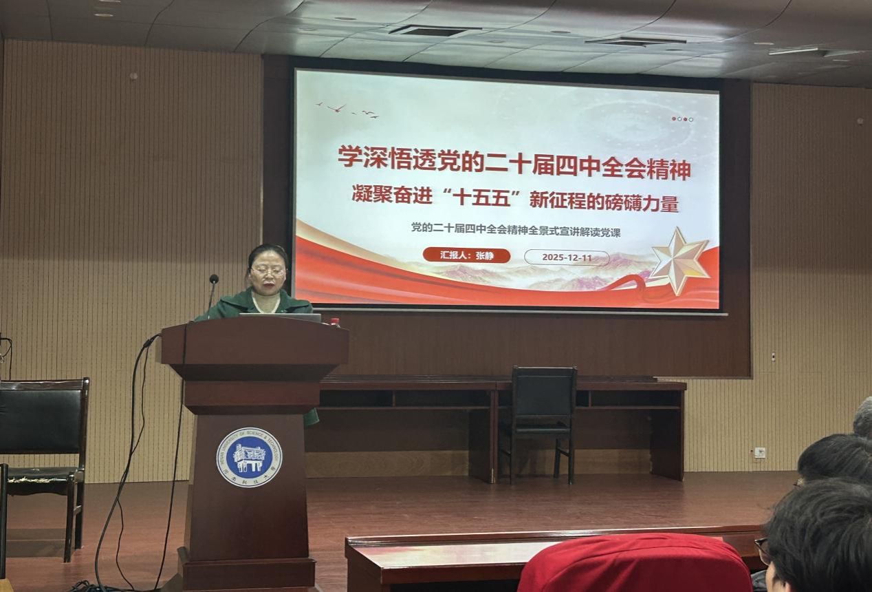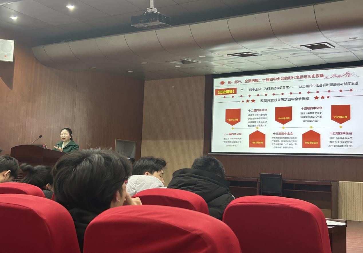 为学深悟透党的二十届四中全会精神,凝聚奋进“十五五”新征程的磅礴力量,2025年12月11日,软件学院在9-115报告厅开展党的二十届四中全会精神宣讲活动,本次宣讲由软件学院党委副书记张静主讲,全体辅导员、软件学院本科生第二党支部党员及其他党支部党员代表参加。